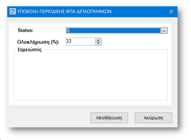 Καταχώρηση ποσοστού ολοκλήρωσης (0–100)