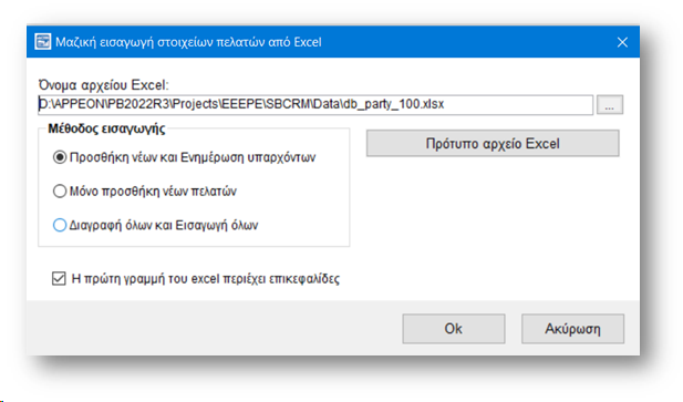 Μόνο προσθήκη νέων πελατώνΕισάγονται μόνο πελάτες που δεν υπάρχουν ήδη στο σύστημα. Οι εγγραφές με ήδη καταχωρημένο ΑΦΜ παραλείπονται.